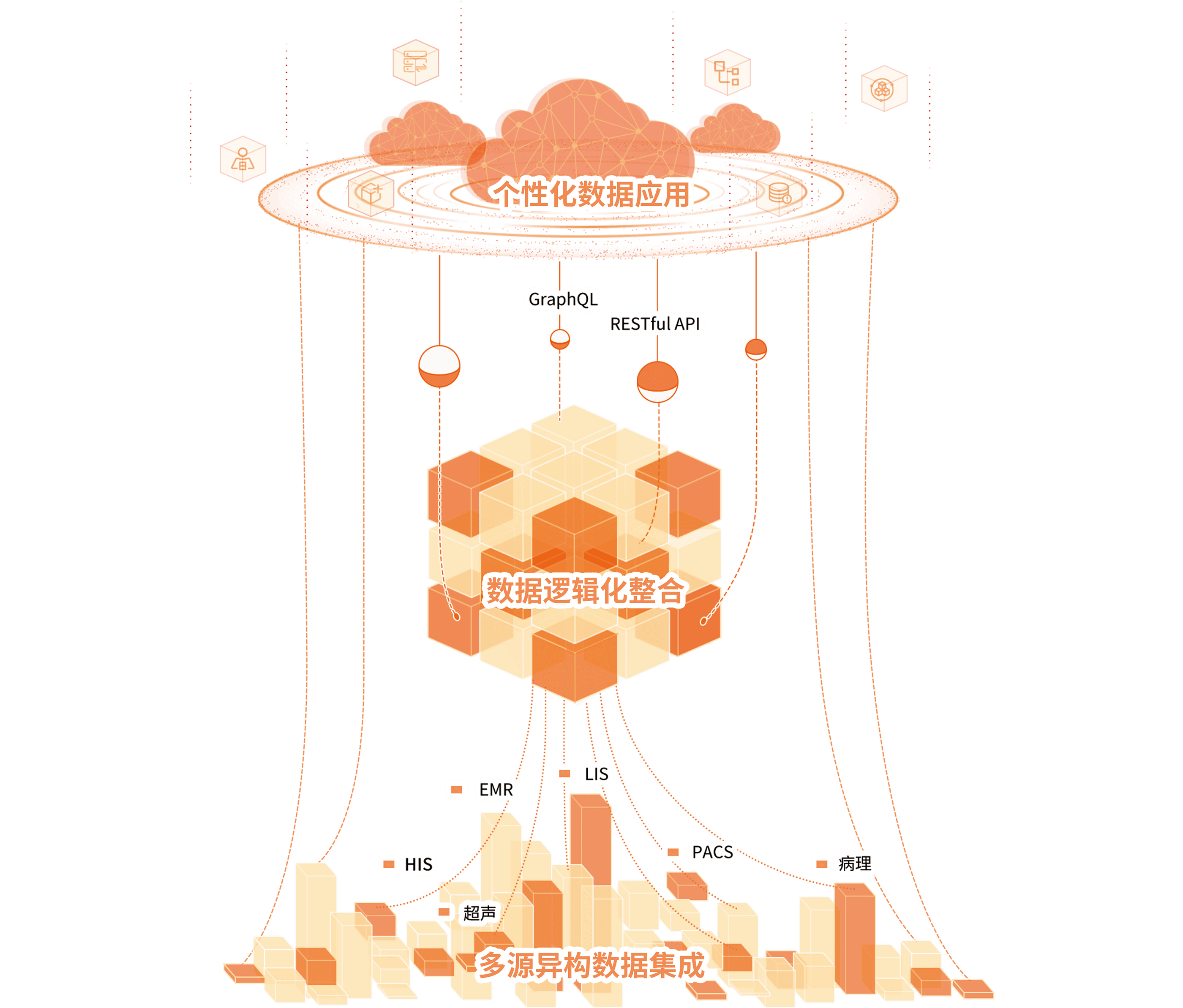 醫(yī)眾醫(yī)療數(shù)據(jù)服務(wù)采用 Data Fabric 數(shù)據(jù)編織的架構(gòu)理念,幫助用戶(hù)應(yīng)對(duì)在數(shù)據(jù)資產(chǎn)化進(jìn)程中產(chǎn)生的復(fù)雜性、分布式、多元化等因素,從單純的以數(shù)據(jù)應(yīng)用為核心建設(shè)數(shù)字化,向體系化的數(shù)據(jù)服務(wù)能力建設(shè)轉(zhuǎn)型。